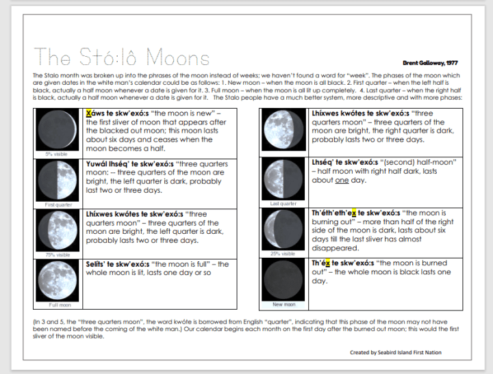 - Link to Sky Stories Collection (includes resource on Stó:lō Moons)