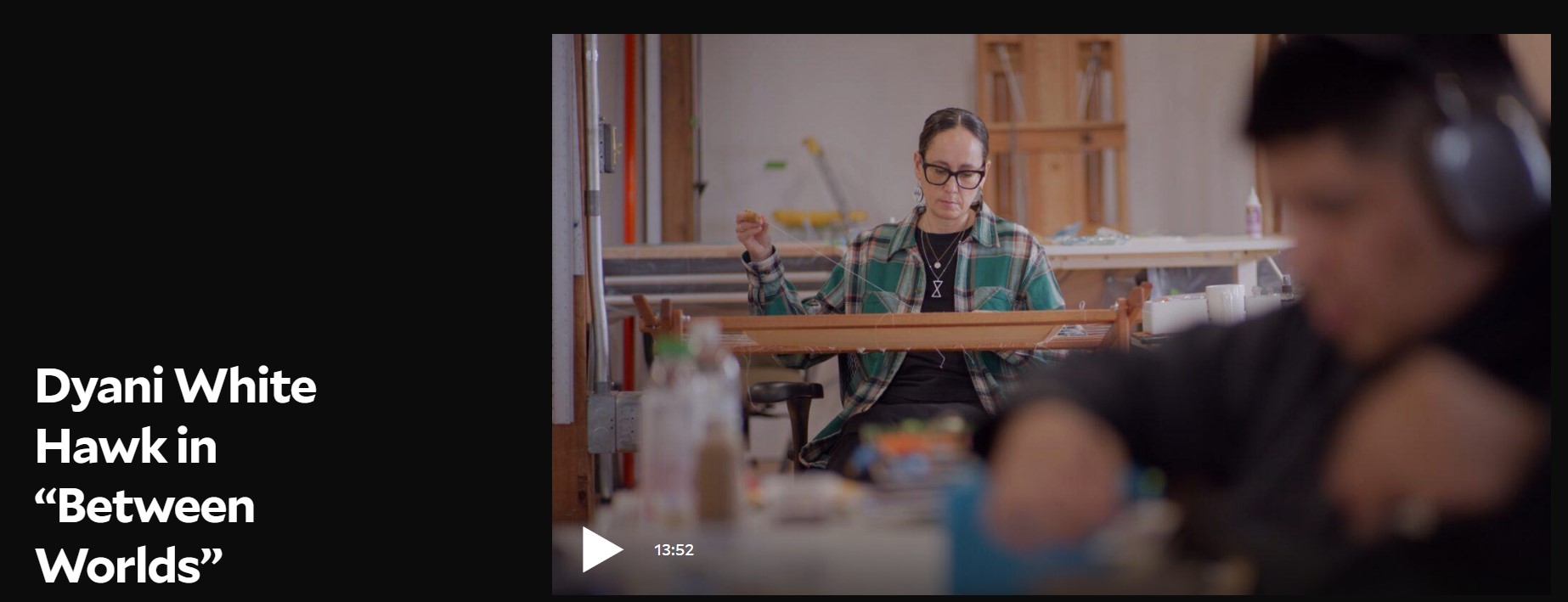 “Surrounded by friends and family working in her Minneapolis studio, one of today’s most acclaimed artists, Dyani White Hawk, finds continuities and commonalities between Indigenous and European abstraction, creating paintings and sculptures that incorporate elements of Lakota beadwork and porcupine quillwork alongside the aesthetics of European easel painting and Modernist abstraction.” (Art in the Twenty-First Century, Season 12).